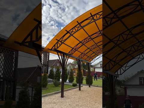 Навес для машины из поликарбоната во дворе частного дома #навесы #спецкаркас